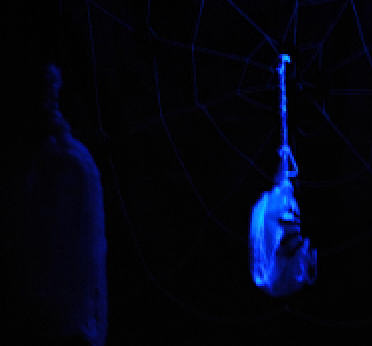 First, obtain materials that naturally glow under blacklight. Cotton string and white “batting” (Fabric Store) usually glow bright blue under blacklight. |